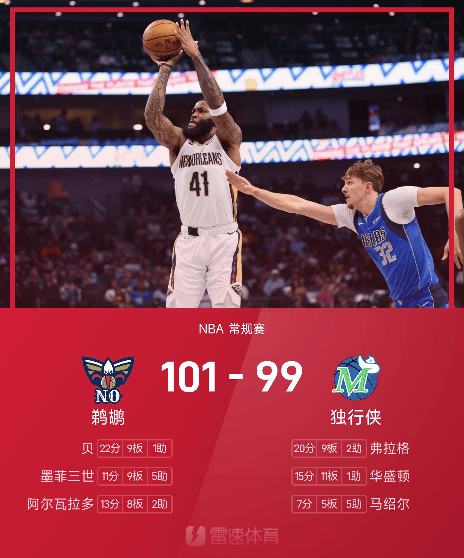 Pelicans 101-99 Mavericks