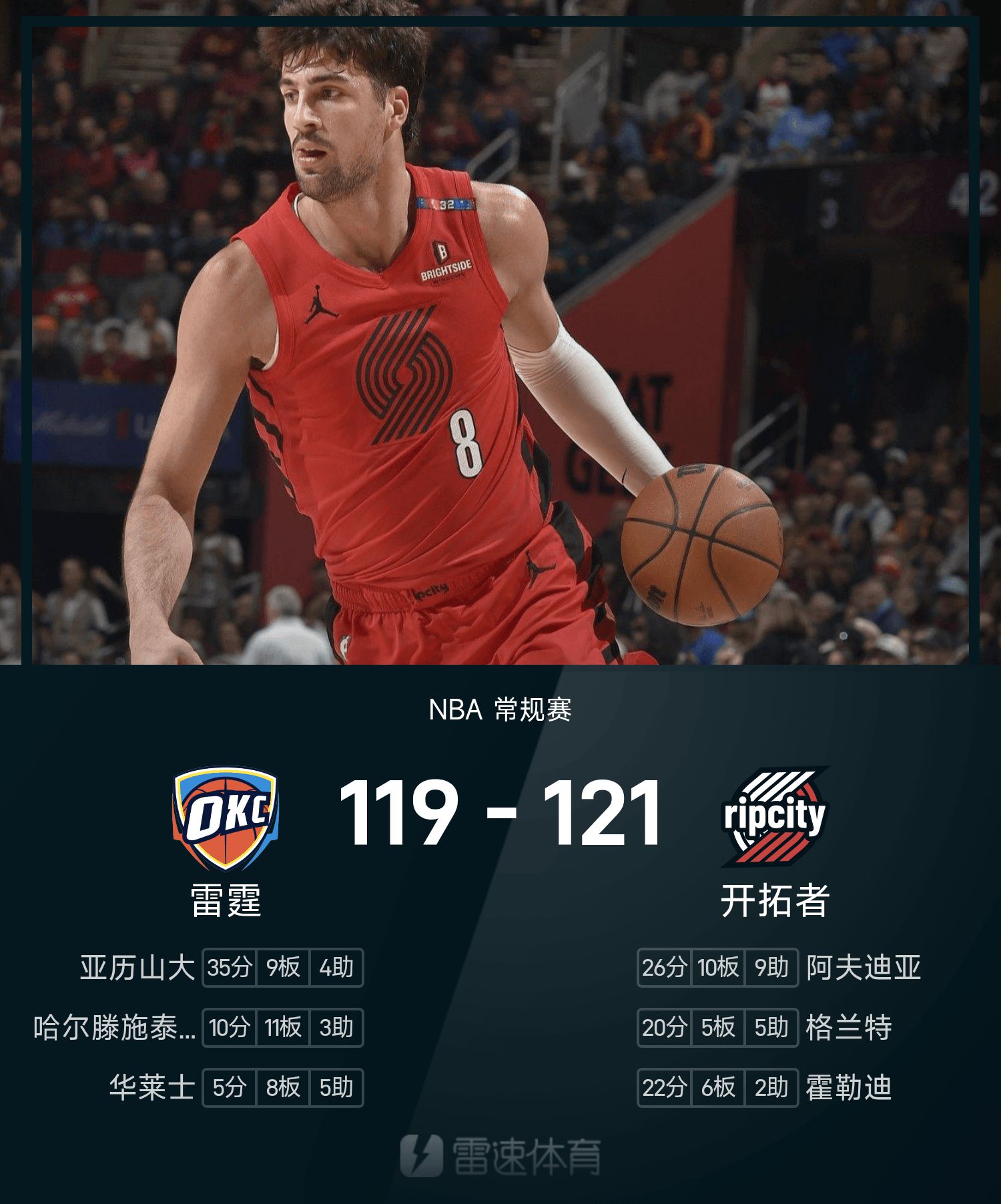 Thunder 119-121 Trail Blazers