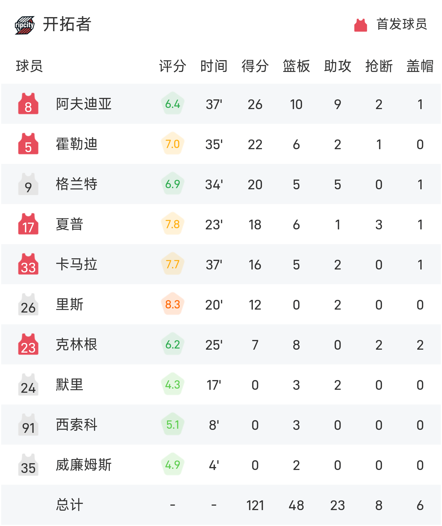 รายงานเกม NBA อาฟดิจา 26 แต้ม หยาง แฮนเซ่น ไม่ปรากฏ เทรลเบลเซอร์ส 121-119 ธันเดอร์