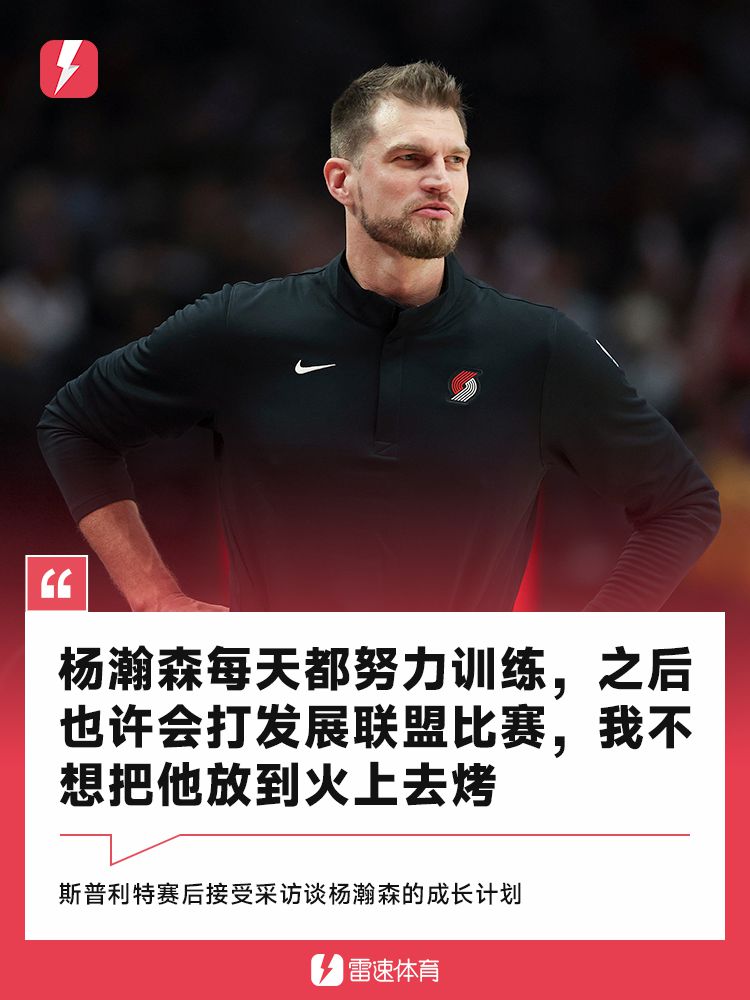 ตามรายงานของบุคคลสื่อ @yovic_ หลังจบเกม Split โค้ชชั่วคราวของ Trail Blazers Split กล่าวถึง Yang Hansen: "Yang Hansen กำลังเสริมความแข็งแกร่งให้กับร่างกายของเขาและปรับปรุงความเร็วของเขาทุกวัน เขาอาจไปที่ Development League เพื่อเล่นเกมนี้ ฉันไม่ต้องการที่จะทำให้เขาถูกไฟเผา"