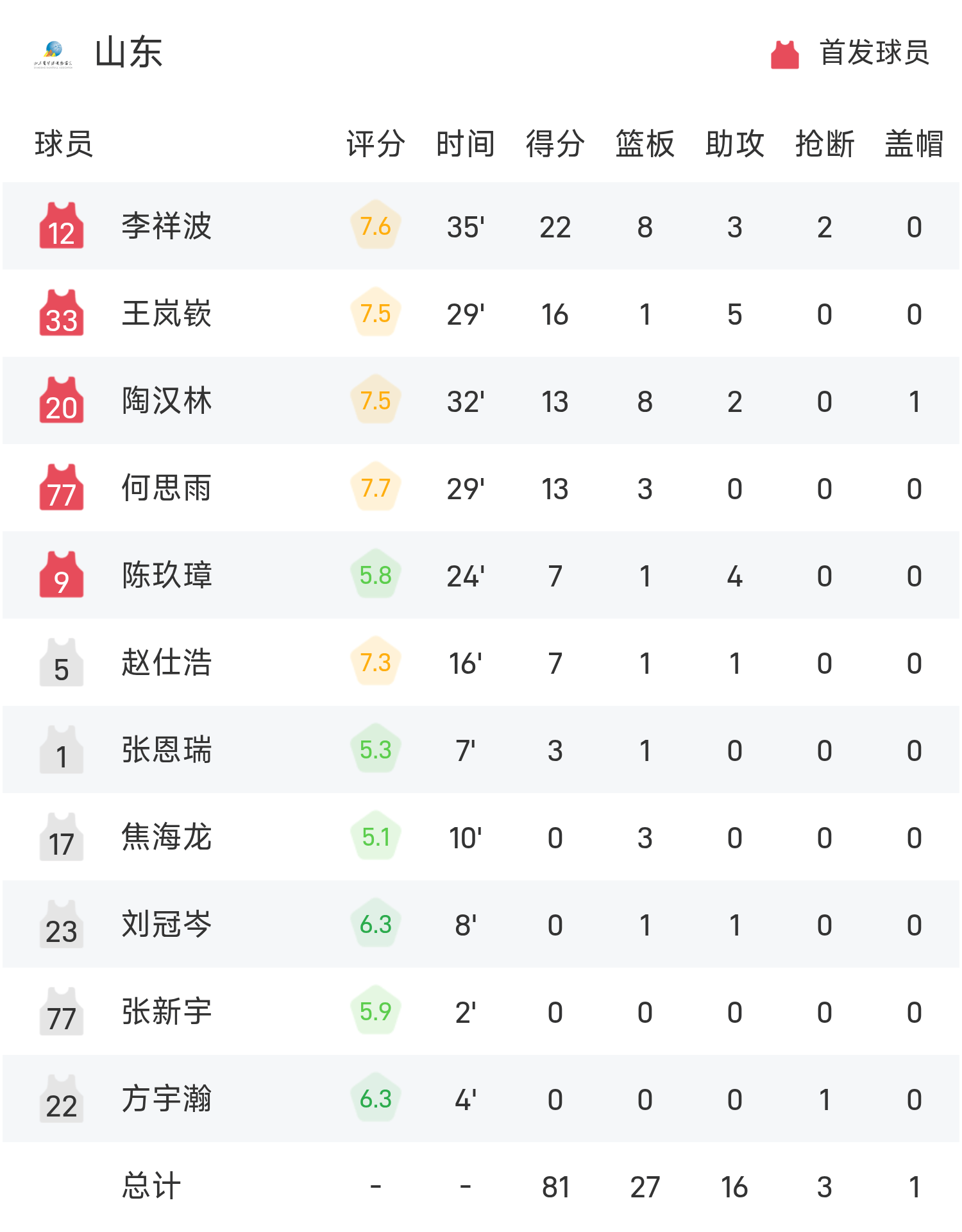 6686 ข่าวกีฬาเมื่อวันที่ 6 พฤศจิกายน ในการแข่งขันกลุ่มบาสเกตบอลชายชายแห่งชาติ เจ้อเจียงเผชิญหน้ากับซานตง จบเกม เจ้อเจียง เอาชนะ ซานตง 85-81 หยู เจียห่าว ยิง 18 แต้ม 9 รีบาวด์ 1 แอสซิสต์ นำทีมคว้าชัย หลี่ เซียงโป ทำคะแนนสูงสุดในเกม 22 แต้ม 8 รีบาวด์ 3 แอสซิสต์