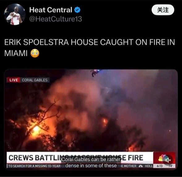 NBACentral รายงานในภายหลังว่าบ้านถูกไฟไหม้จนหมด และมีคนเห็น Spoelstra อยู่นอกบ้านของเขาขณะที่นักดับเพลิงพยายามดิ้นรนเพื่อดับไฟ