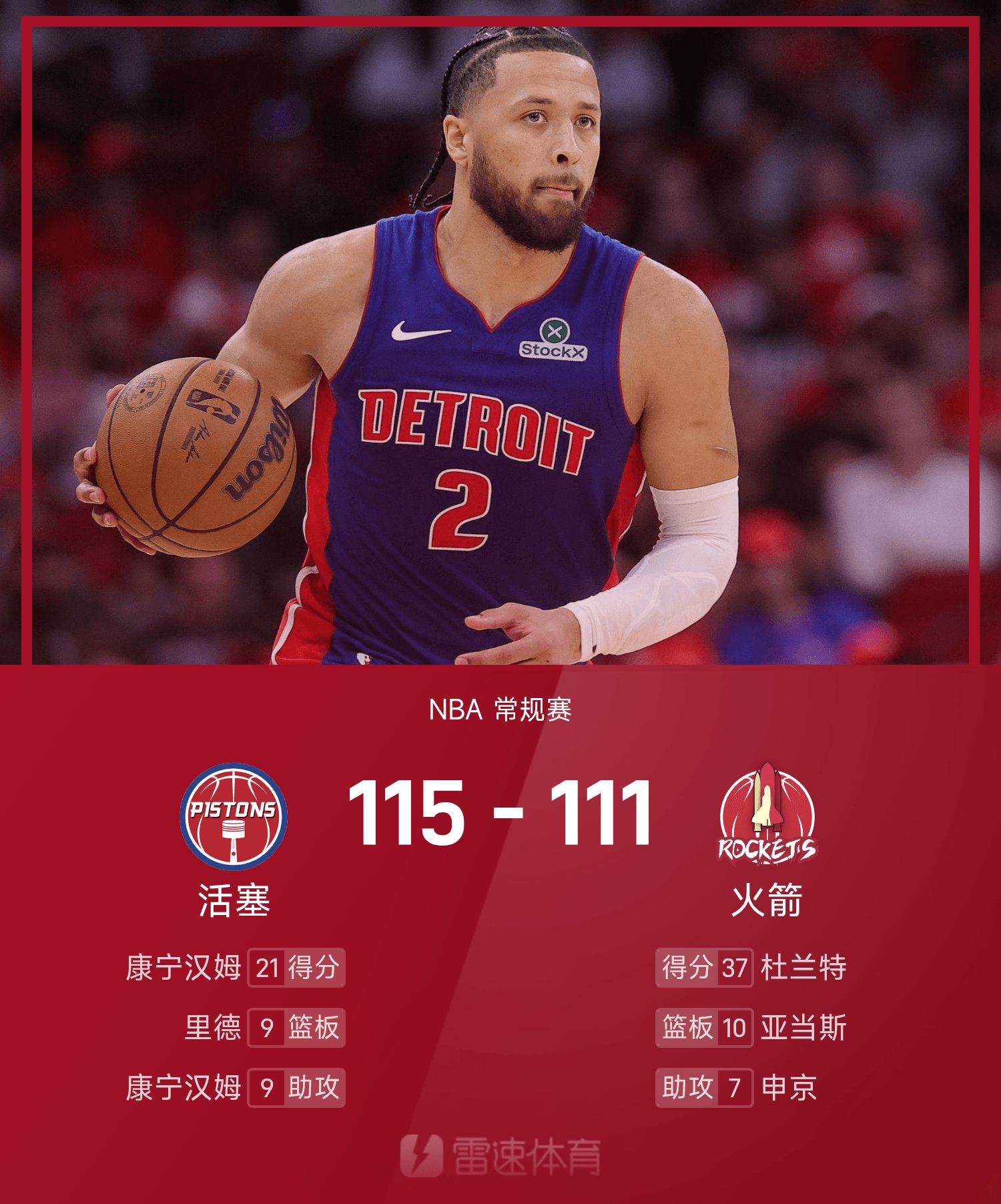คันนิงแฮมทำได้ 7 จาก 16 ช็อตและทำคะแนน 21 แต้ม 7 รีบาวน์และ 9 แอสซิสต์