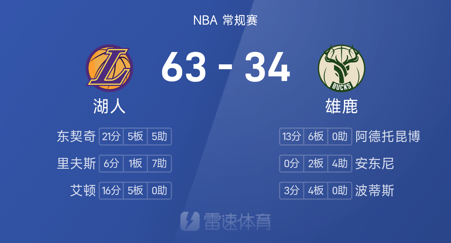 ขณะนี้ทั้งสองฝ่ายอยู่ในช่วงพักครึ่ง โดยมีบัคส์ 34-63 และเลเกอร์สตามหลัง 29 แต้ม