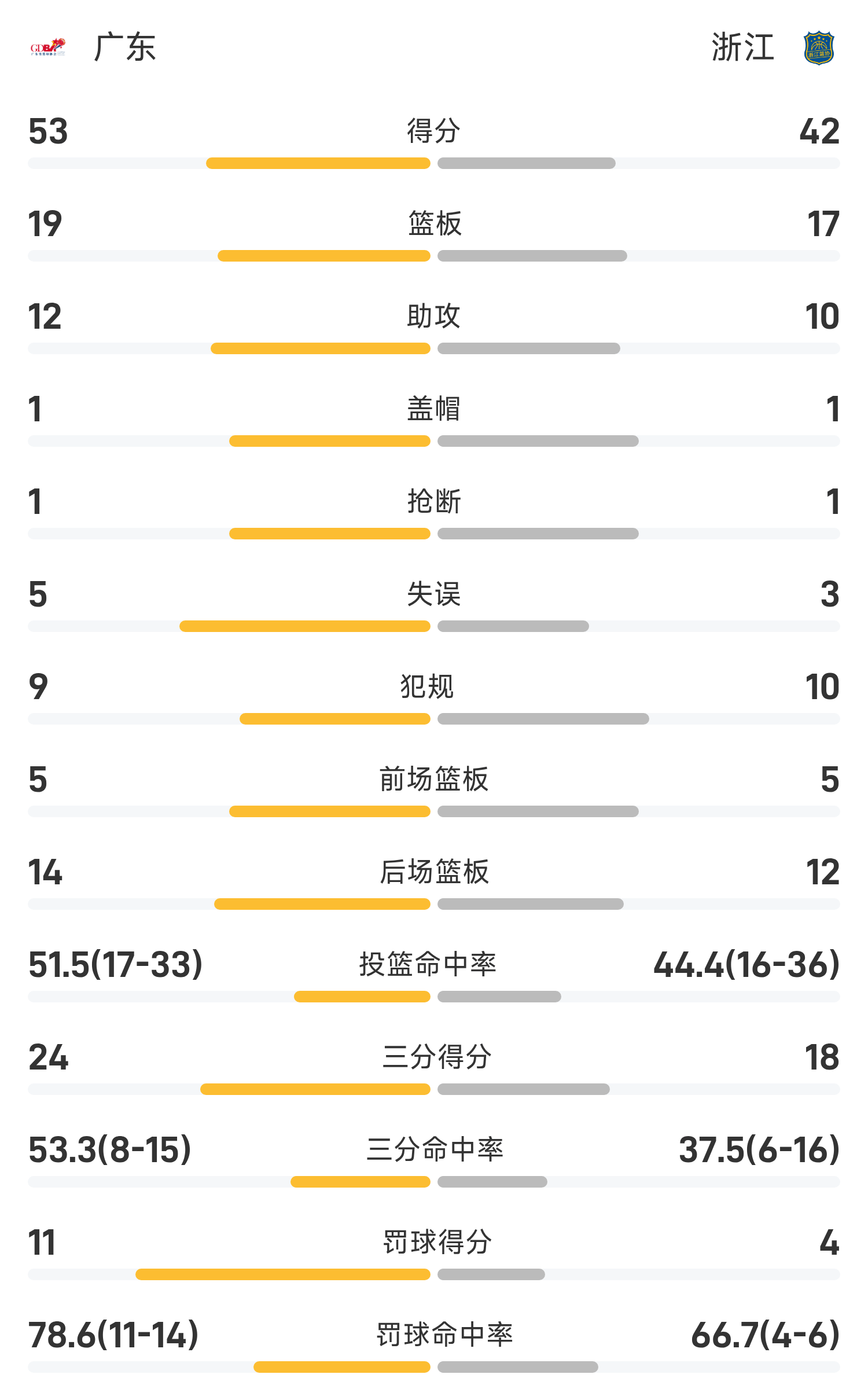 บาสเก็ตบอลชายรอบชิงชนะเลิศกีฬาแห่งชาติ พักครึ่ง: จู จุนหลง 13+5, ซูเจี๋ย 15 แต้ม, กวางตุ้ง 53-42 เจ้อเจียง