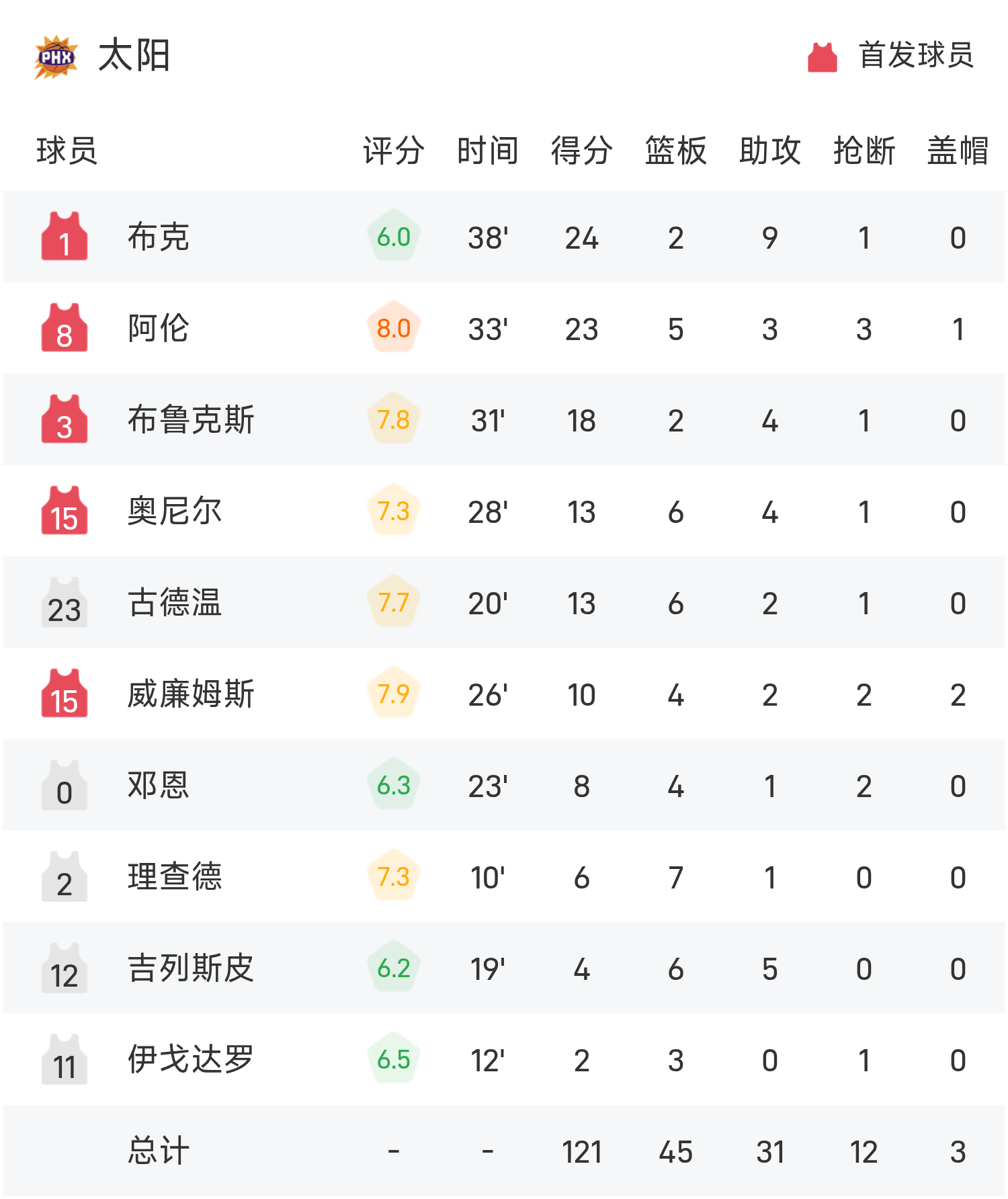 บุ๊คเกอร์ทำคะแนนสูงสุดในเกม 24 แต้ม 2 รีบาวด์ และ 9 แอสซิสต์ นำทีมเดอะซันส์คว้าชัยชนะ