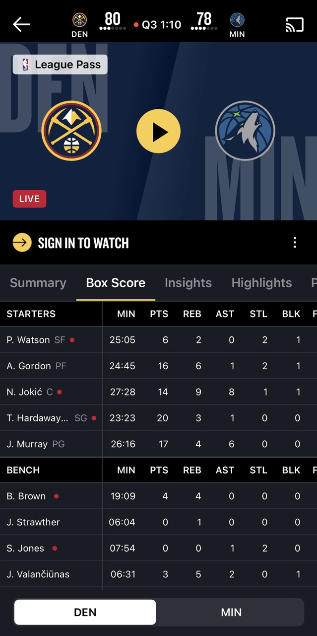 อย่างไรก็ตาม ข้อมูลบนเว็บไซต์อย่างเป็นทางการของ NBA จะไม่ได้รับการอัปเดตอีกต่อไปหลังจากได้รับการแก้ไขที่ 80-78 ในไตรมาสที่สาม ดังนั้นข้อมูลสำหรับเกมนี้จะต้องรอในขณะนี้