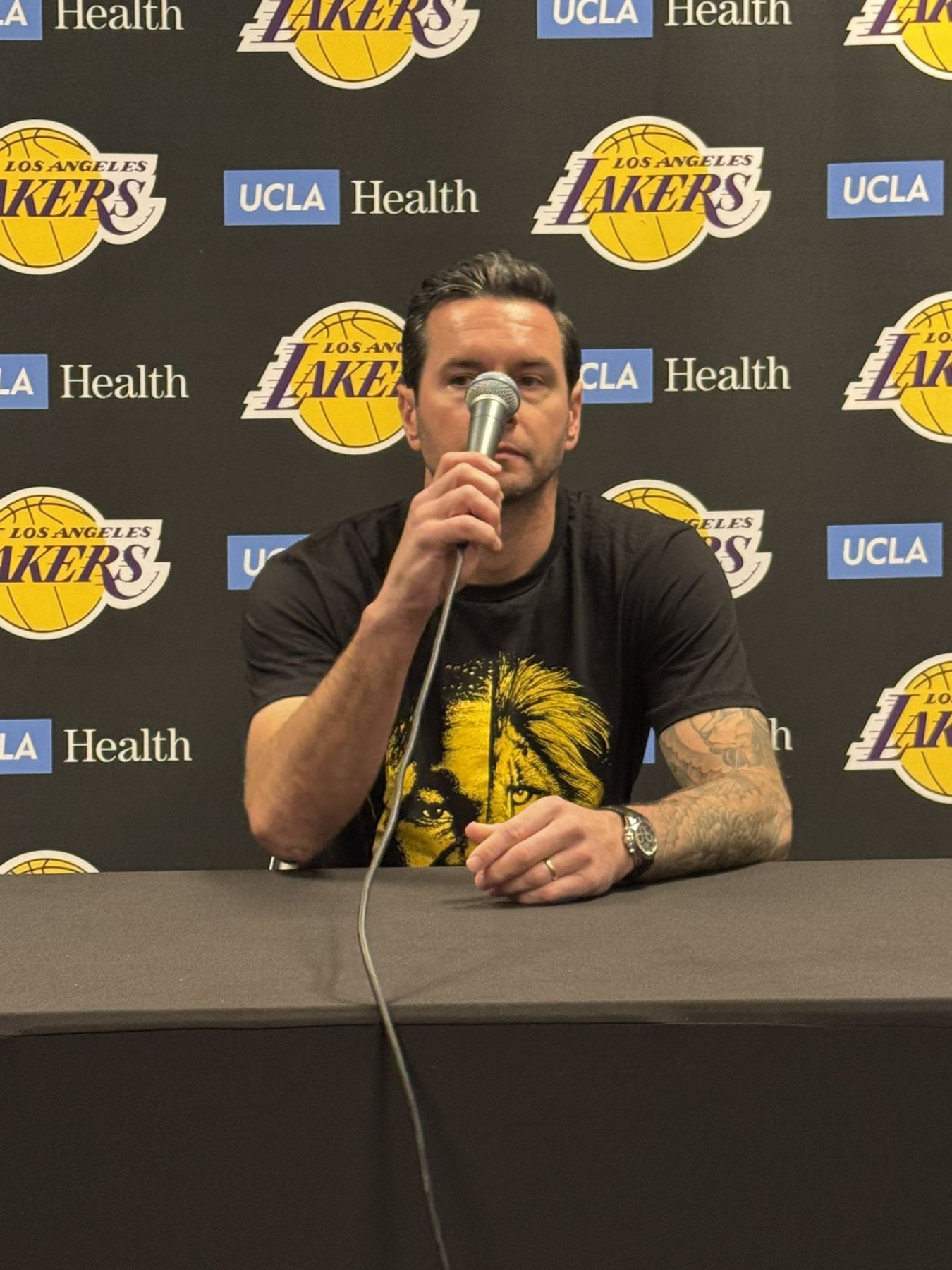 วันนี้ Redick สวมเสื้อยืดสั่งทำพิเศษซึ่งมีการผสมผสานระหว่าง Ayton และ Lion เมื่อถามว่าทำไมถึงเลือกเสื้อผ้าชิ้นนี้ เขาก็ให้คำตอบนี้
