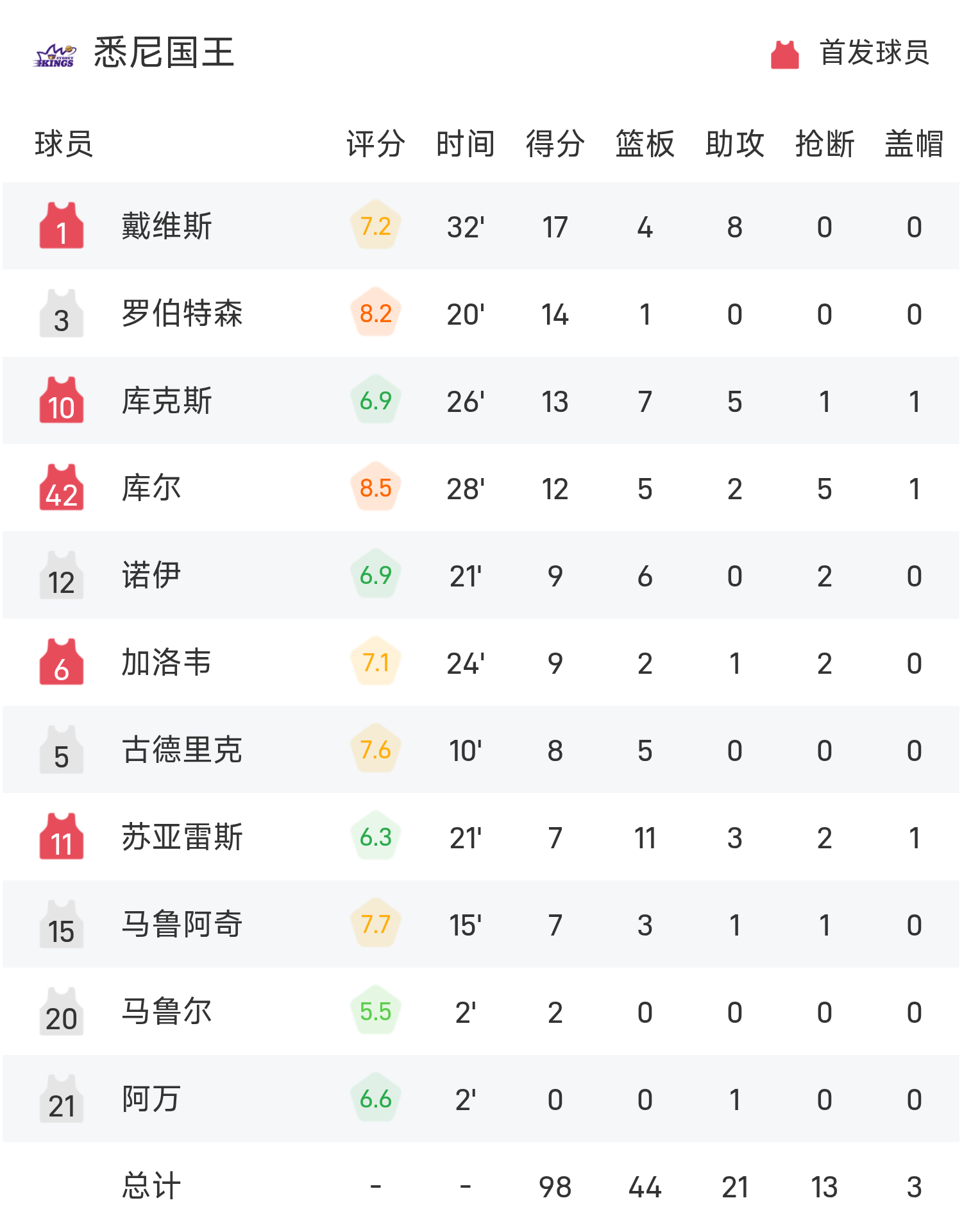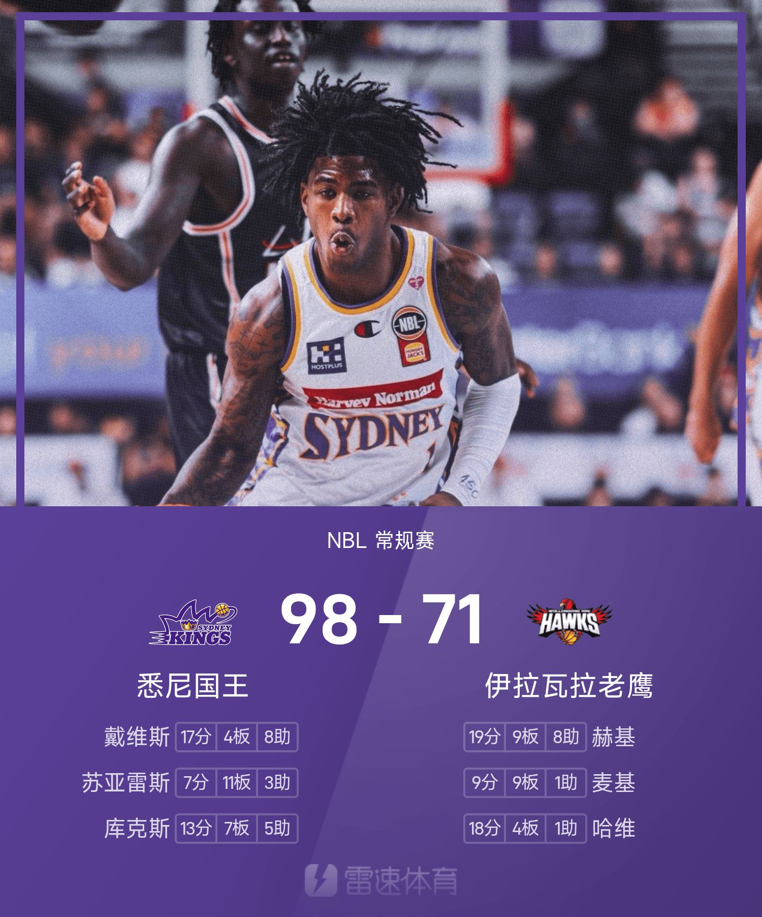 รายงานเกม NBL เดวิสมี 17 แต้ม 8 แอสซิสต์ ซิดนีย์ คิงส์ เอาชนะ อิลลาวาร์รา ฮอว์กส์ 98-71