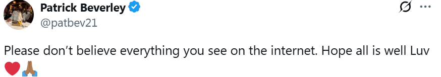 เพื่อเป็นการตอบกลับ Beverly ได้อัปเดตข่าวและเขียนว่า: "โปรดอย่าเชื่อทุกสิ่งที่คุณเห็นบนอินเทอร์เน็ต ฉันหวังว่าทุกอย่างจะเรียบร้อยดีและฉันรักคุณ"