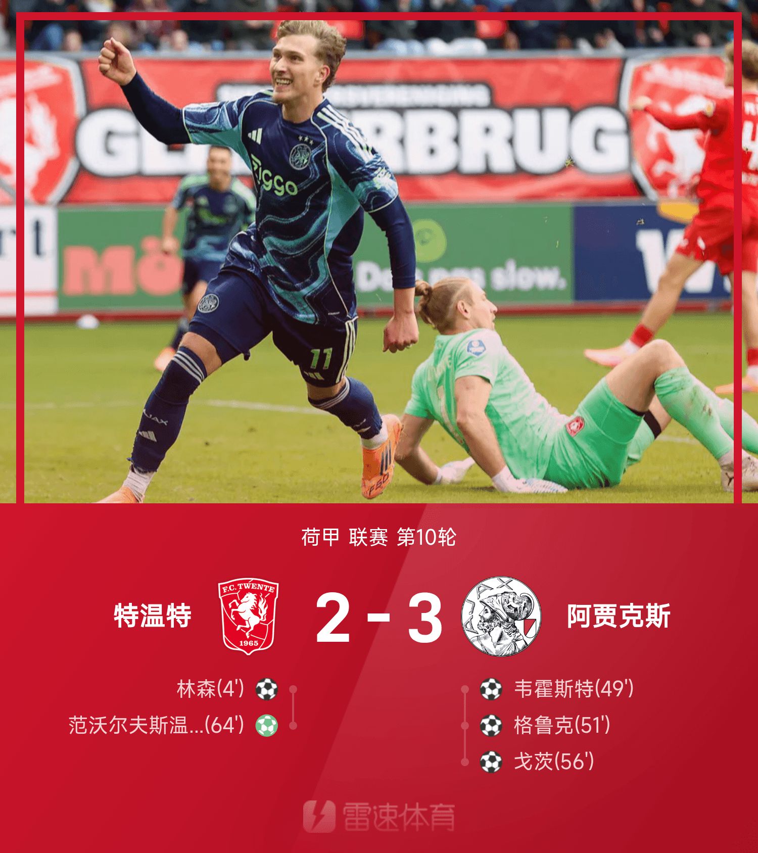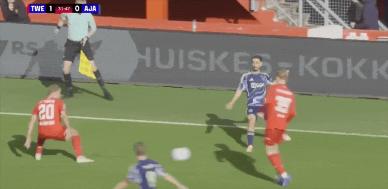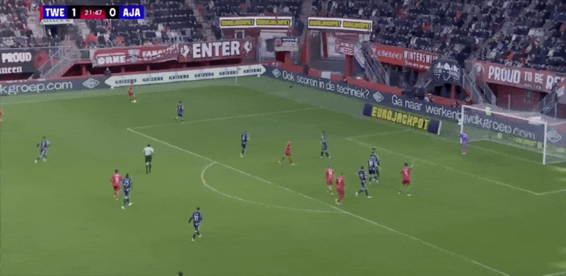 18' เวอร์ฮอสต์หันกลับมาและเลี้ยงบอลในโซนสามวินาทีแล้วยิงประตูแรกของเกมให้อาแจ็กซ์
