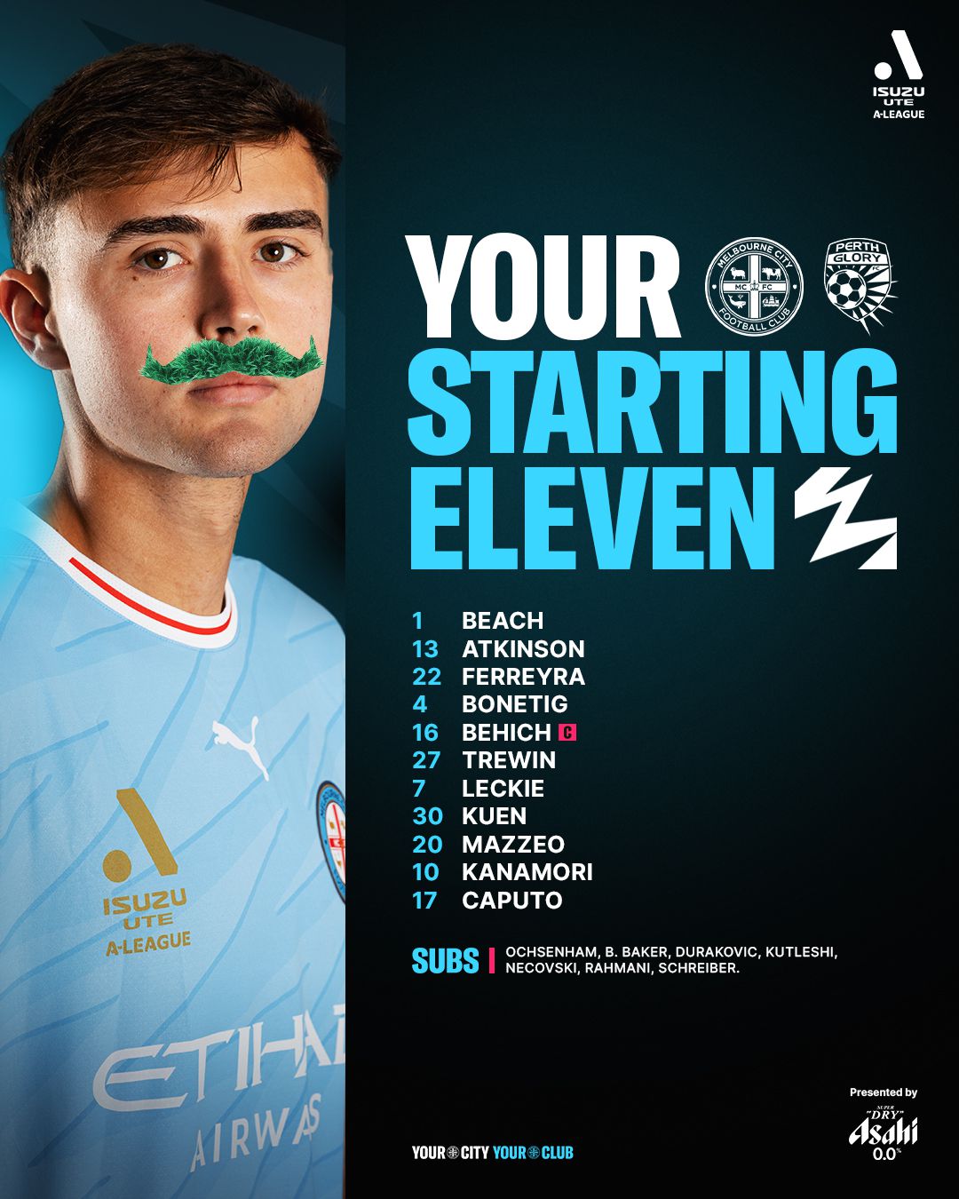 รายชื่อตัวจริงของเมลเบิร์น ซิตี้: 1-บีช, 22-เฟอร์เรรา, 27-เทรวิน, 4-โบเน็ตติเก, 7-เลคกี้, 30-คุน, 10-คิโมริ ทาเคชิ, 16-เบซิช, 1 3-แอตกินสัน, 17-คาปูโต, 20-มาซเซโอ