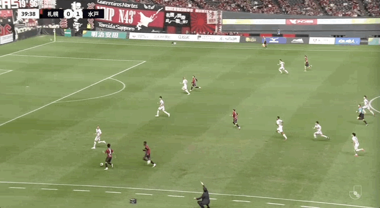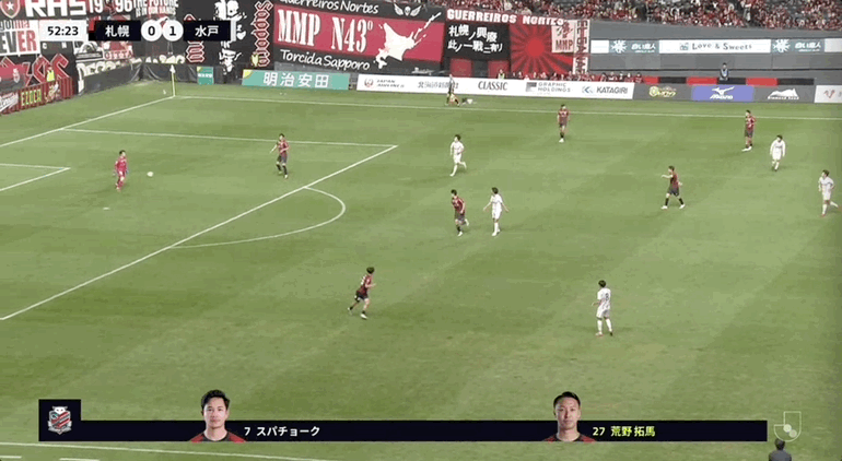 53' ซัปโปโรเคลื่อนบอลตามบอลไป แต่ยังคงอดทนผ่านบอลลงสนาม