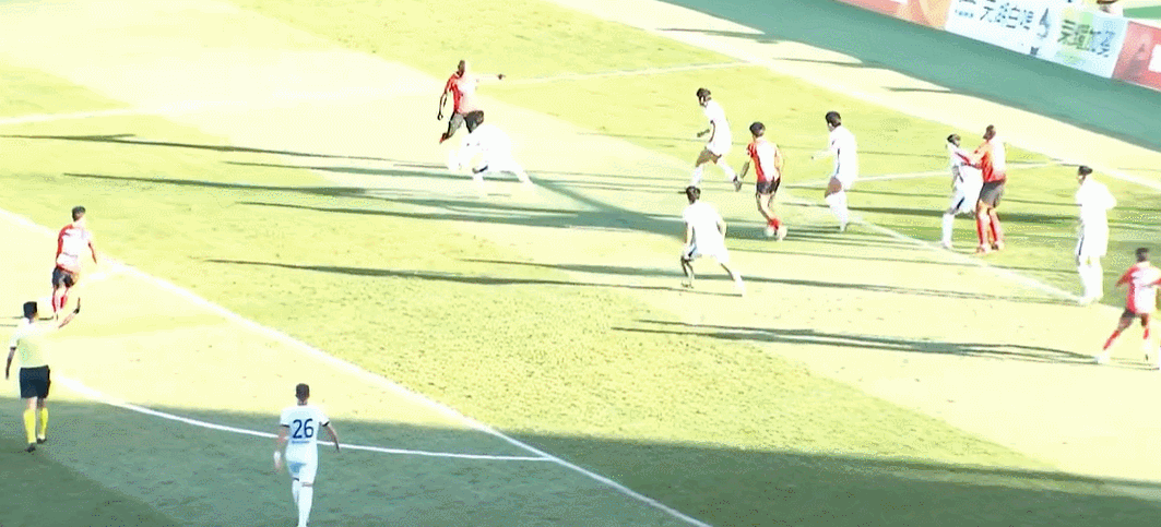 31’ จาง อี้เฟิง บุกเข้าไปในโซนสามวินาทีเพื่อรับบอลจากเพื่อนร่วมทีมและผลักไปที่มุมไกล สูงกว่าคานเล็กน้อย