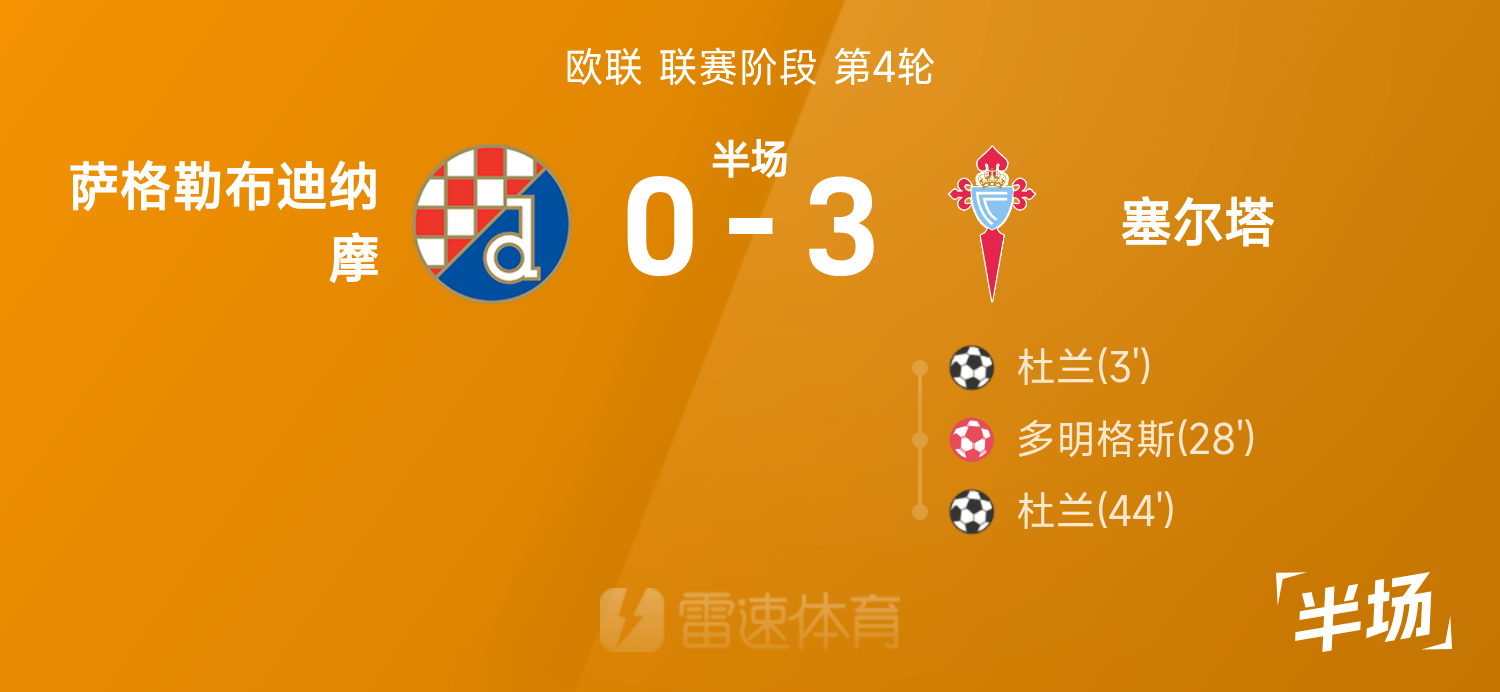 6686 Sports 07 พฤศจิกายน ในรอบที่สี่ของยูโรป้าลีก 25/26 ดินาโม ซาเกร็บ เผชิญหน้ากับเซลต้า บีโก้ หลังพักครึ่งสกอร์ระหว่างทั้งสองฝ่ายคือ ดินาโม ซาเกร็บ 0-3 เซลต้า ดูรานยิงได้สองครั้ง และโดมิงเกซทำเข้าประตูตัวเอง