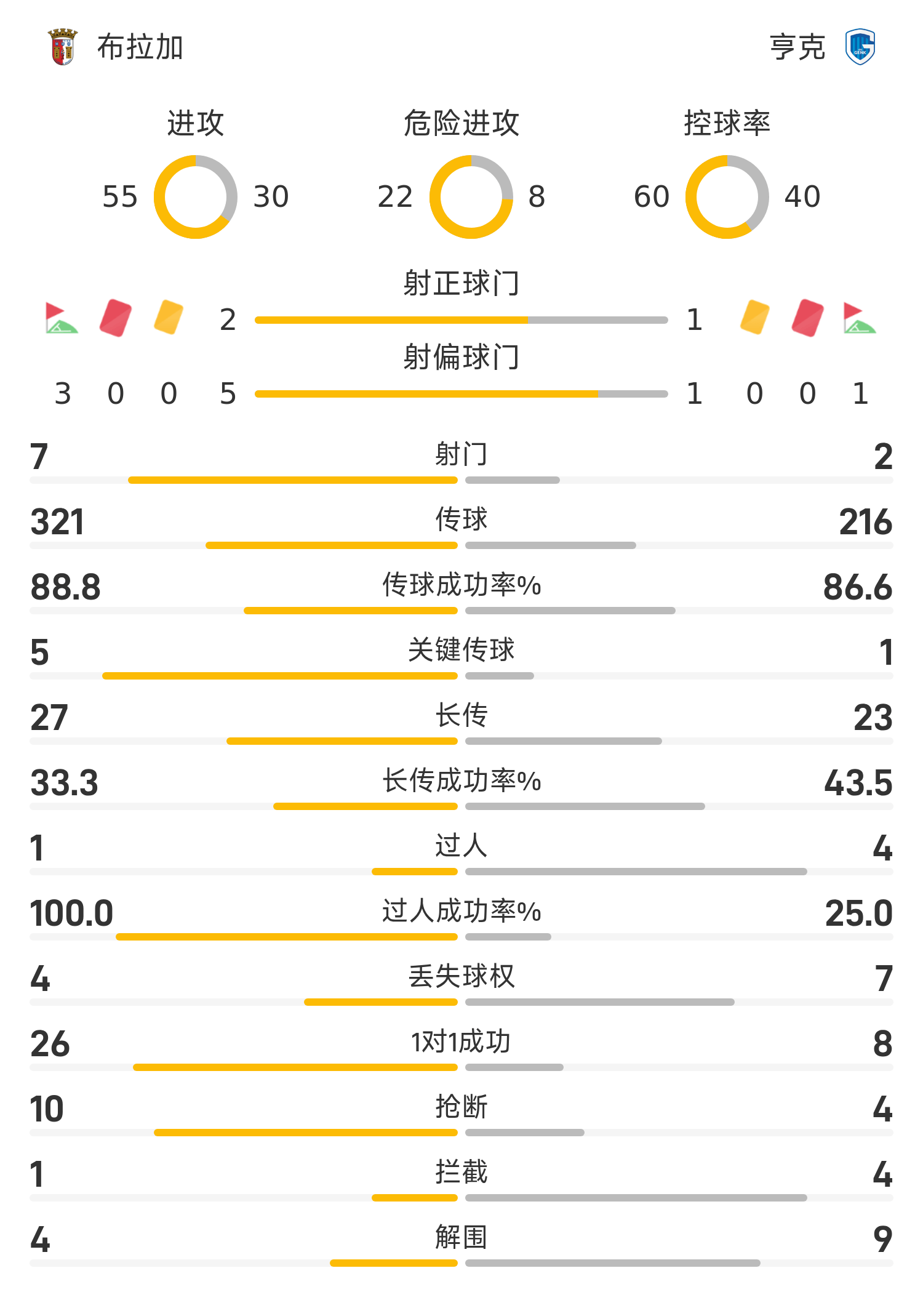 รายชื่อผู้เล่นตัวจริงของบราก้า: 1-Honicek, 2-Gómez, 5-Lello, 26-Mbi, 14-Ragebilk, 8-Moutinho, 21-Horta, 29-Golbi, 10-Zalazar , 9-Vazzani, 77-มาร์ติเนซ