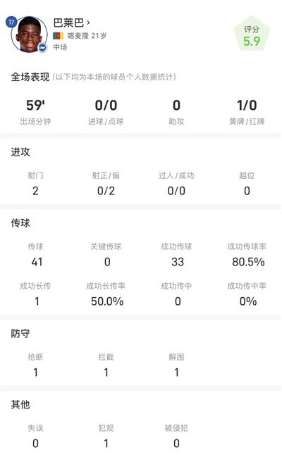 6686 ข่าวกีฬาวันที่ 26 ตุลาคม ในรอบที่ 9 ของพรีเมียร์ลีก ไบรท์ตันท้าดวลแมนเชสเตอร์ ยูไนเต็ด นอกบ้าน บาเลบากองกลางตัวรับของไบรท์ตันเป็นตัวจริงในเกมนี้ แต่ฟอร์มการแข่งขันของเขาค่อนข้างเชื่องช้า และการรับรู้เรื่องการสกัดกั้นและประสิทธิภาพในการป้องกันยังต่ำมาก ในนาทีที่ 59 ของเกม เขาถูกแทนที่โดยนักเตะรุ่นเก๋า มิลเนอร์ เมื่อบาเลบาออกจากสนาม ไบรท์ตันตามหลัง 0-2 ไปแล้ว