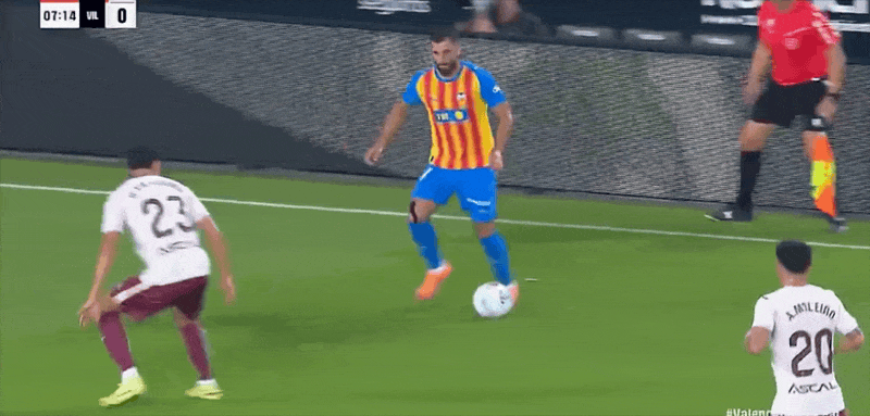 รายชื่อผู้เล่นตัวจริงของบาเลนเซีย: 25-Aguirre Zabala, 14-Gaya (61'21-Vazquez), 12-Correa (83'19-Lava), 3-Copet, 5-Tarraga, 18-Pepelu (83'22-Santa Maria), 7-ดันจูม่า, 1 1-ริโอจา, 8-เกร์รา (61'10-อัลเมดา), 15-เบลตรัน (46'9-ดูโร), 16-โลเปซ