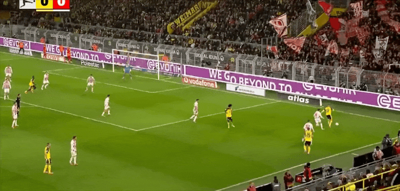 10' บอลแนวหน้าของดอร์ทมุนด์ทำให้เกิดความสับสนวุ่นวาย แอนตันผลักมุมไกลจากระยะใกล้และถูกสกัดกั้นจากท้ายเกม line