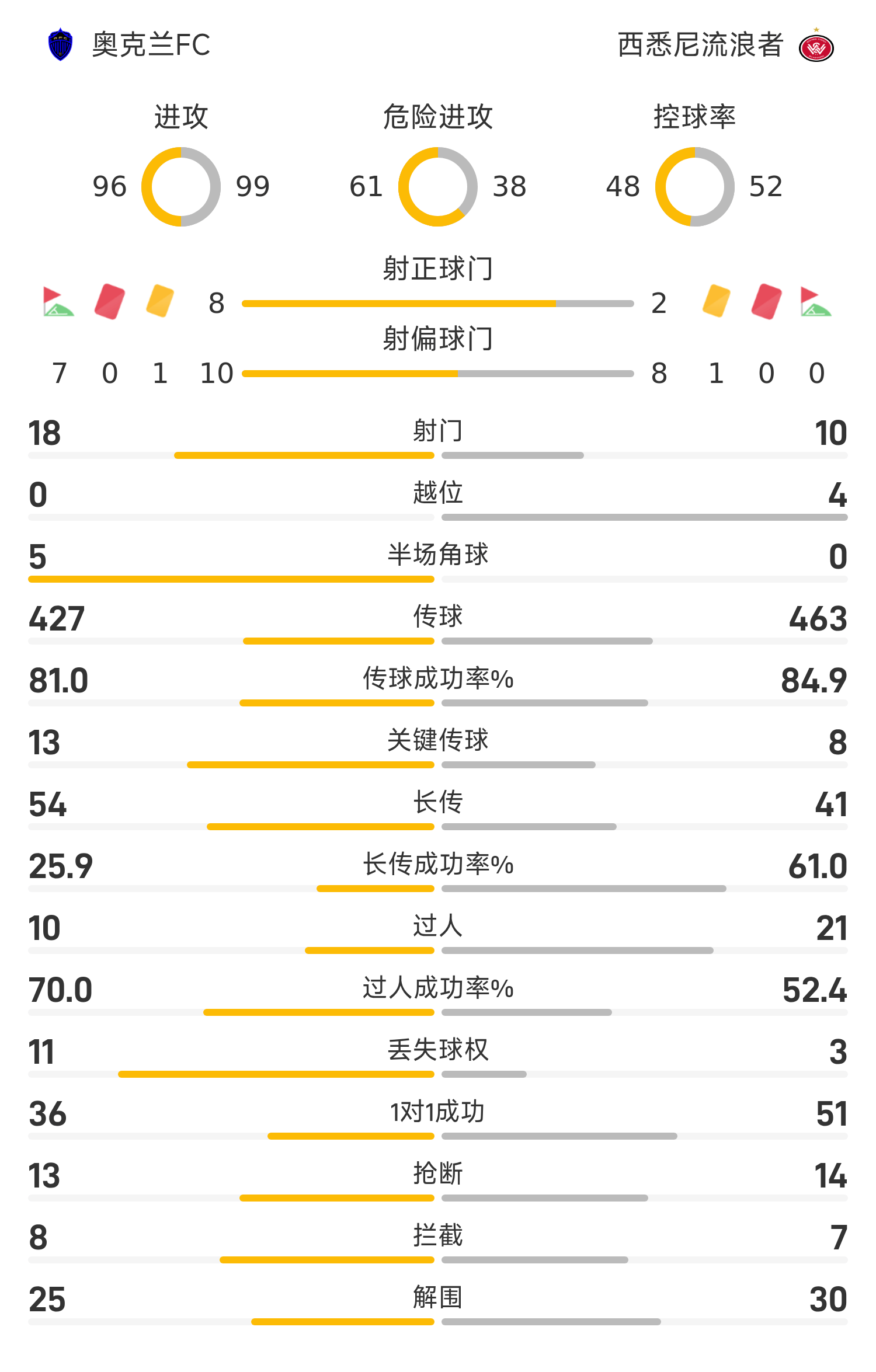 26’ ผู้รักษาประตูโอ๊คแลนด์ตีออกทันเวลาและช่วยชีวิตทีมด้วยการช่วยเหลือคู่ต่อสู้เพียงลำพัง