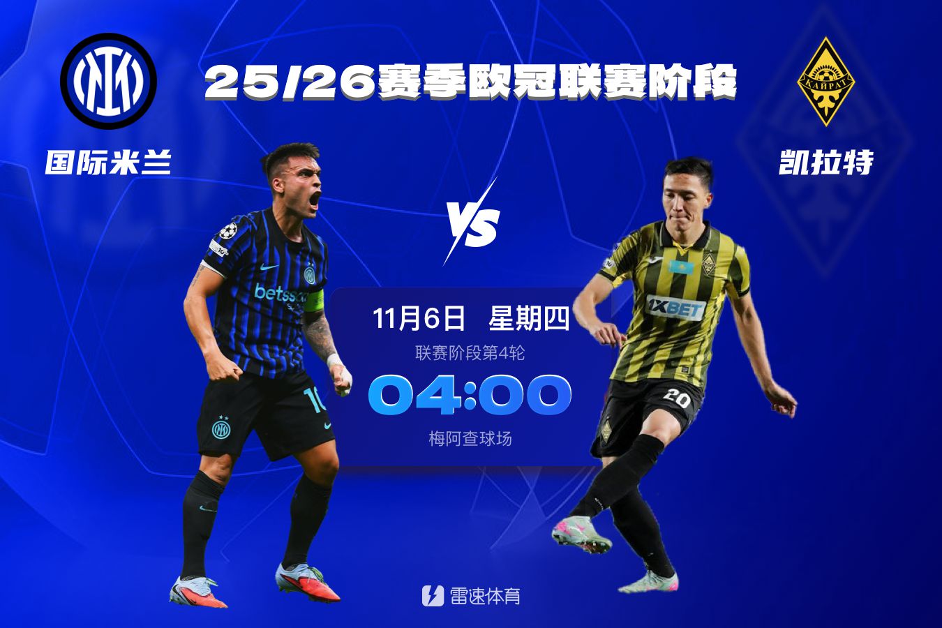 6686 ข่าวกีฬา ในวันที่ 5 พฤศจิกายน เวลา 04.00 น. ตามเวลาปักกิ่งของวันที่ 6 ในรอบที่สี่ของยูฟ่าแชมเปียนส์ลีก อินเตอร์ มิลานจะเล่นในบ้านกับทีมคาซัค Kairat
