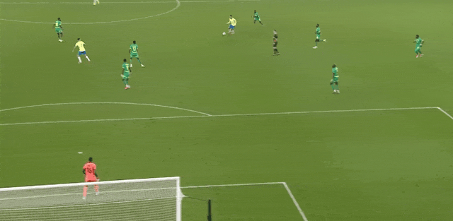 รายชื่อผู้เล่นตัวจริงของบราซิล: 23-Ederson, 6-Sandro, 4-Marquinhos, 2-Militão, 3-Gabriel, 5-Casemiro, 8-Guimarães, 7-Vinicius, 21-Cunha, 10- Rodrigo, 20-เอสเตวาน