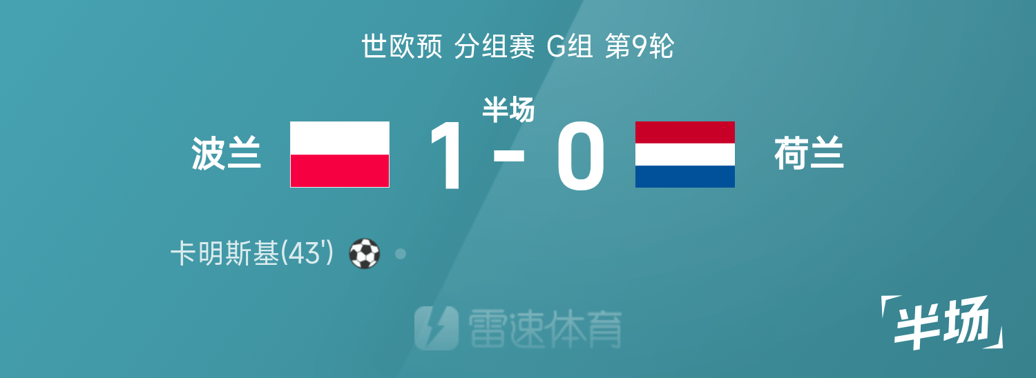 ครึ่งเวลาแรกโลกรอบคัดเลือกยุโรป: คามินสกี้เตะมุมไกลและทำประตูให้โปแลนด์เฉือนเนเธอร์แลนด์ 1-0 ชั่วคราว