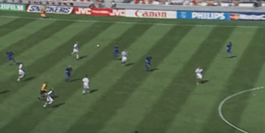 ต่อจากนั้น เดล ปิเอโร รับบอลจากทางซ้าย แกว่งไปทางซ้ายและขวา และสุดท้ายก็เหยียบบอลและล้มลงกับพื้น