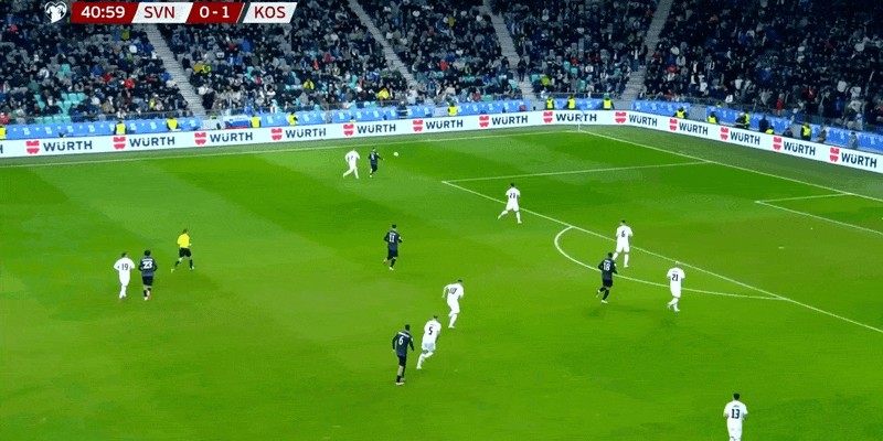 11'กองหลังโคโซโวทำผิดพลาดในการเคลียร์บอล และลูกยิงของวิโปตนิกถูกบล็อก